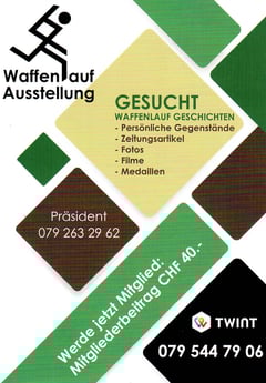 Die Mitglieder vom Verein Waffenlauf Ausstellung laden herzlich zur Ausstellungseröffnung am 30. April 2023 im Gemeindehaus Boswil ein.